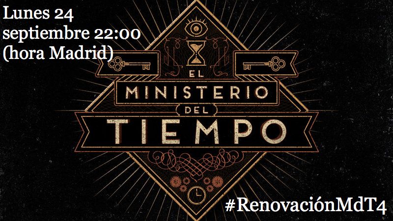 El primero, comentaros una cosilla, os agradecería si la leéis: El pasado lunes, en twitter, se llevó a cabo la propuesta #MdTRenovación, que pedía una renovación del MdT. Sin entrar en detalles técnicos, fuimos bastantes los que twitteamos con ese hastag, ¡Y nos convertimos en TT (Trending Topic) durante 6 horas con un buen puesto Nº8! Las cuentas oficiales de Netflix España y de Javier Olivares incluso se sumaron al hastag... Y parece ser que hay alguna puerta abierta por ahí. Sin embargo, no es suficiente: este lunes 24, se volverá a llevar a cabo una pedida masiva de renovación del MdT, con un nuevo hastag, el #RenovaciónMdT4 . Creo yo, que si leéis mi blog y sois seguidores del MdT con cuenta en Twitter... ¡Pues animaos este lunes a twittear, repito, con el #RenovaciónMdT4 a partir de las 22:00! Y seguid a las cuentas de Twitter, que apoyan masivamente esto, Tiempo Ministérico (Quienes están moviendo esto) y Tiempo de relatos.